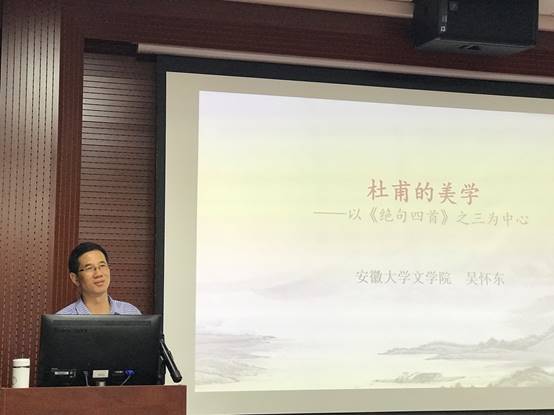 5月28日晚,安徽大学文学院吴怀东教授在16521为中文学院师生作题为“杜甫的美学——以《绝句四首》之三为中心”的学术讲座。