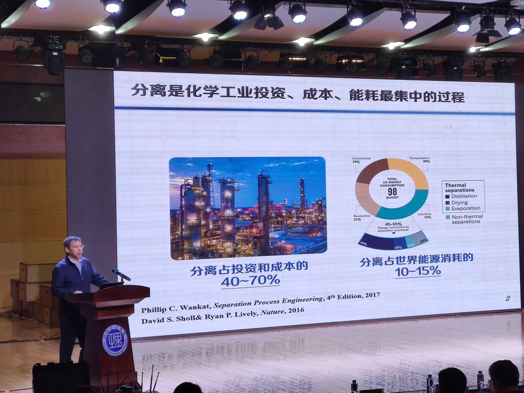 任其龙教授的报告首先深入浅出地介绍了分离工程的发展前沿及其在先进制造、生物医药等领域的重要意义,然后讲述了分子辨识的概念、发展历程及其与分离过程的相互关系,引入分子辨识分离工程的理念和内涵。最后,任其龙教授结合自身的研究经历和典型的研究案例,为师生们展示了分子辨识分离技术在天然产物分离、气体混合物分离、石油化工产品深度净化等复杂分离技术领域的强大应用能力和广阔发展前景。