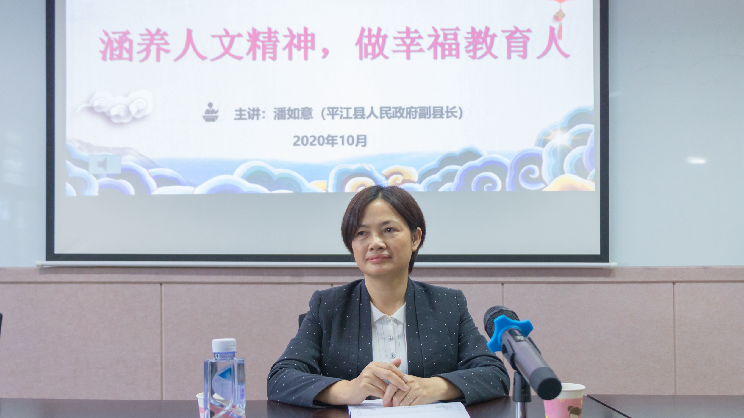 校园网讯 “变化的是方式,不变的是内容;这个世界唯一不变的就是变化,唯一不变的是对美好生活的追求。”10月27日,岳阳市平江县副县长潘如意走进教育科学学院1号楼1302号教室为125名教育硕士带来以“涵养人文精神,做幸福教育人”为主题的教育讲座。此次讲座由教育科学学院院长刘理主持,研究生院党总支书记李丽荣等领导参加了此次活动。