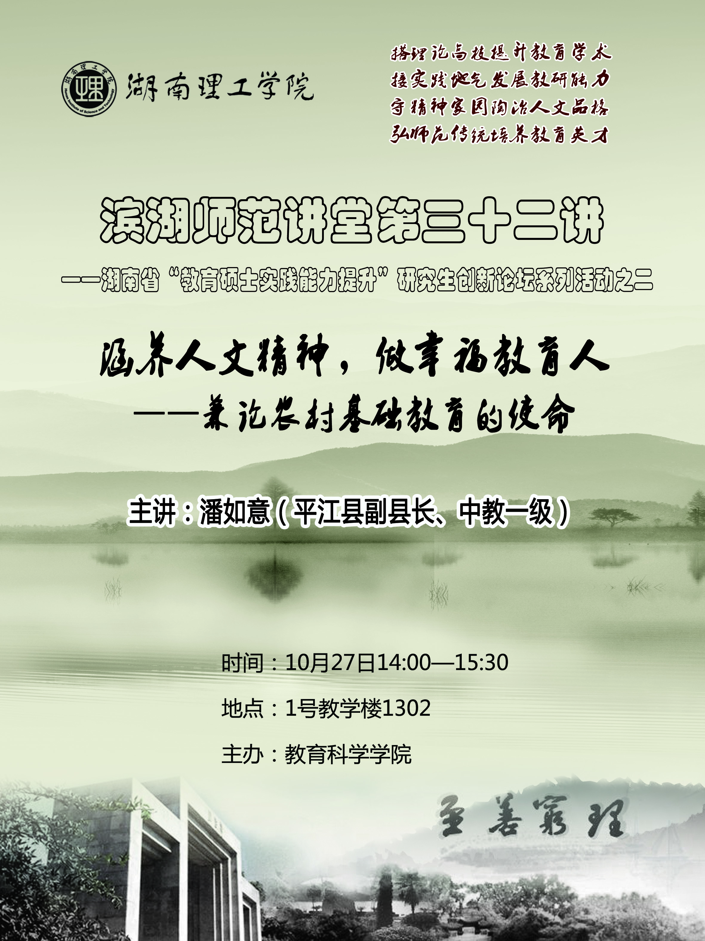 “滨湖师范讲堂”第三十二讲预告—涵养人文精神,做幸福教育人