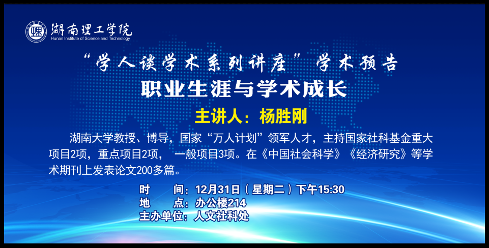 “学人谈学术系列讲座”学术预告——职业生涯与学术成长