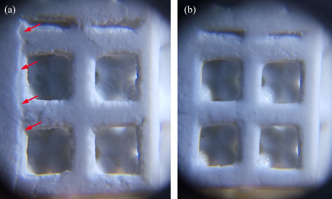 精细多孔支杆结构打印清洗效果对比